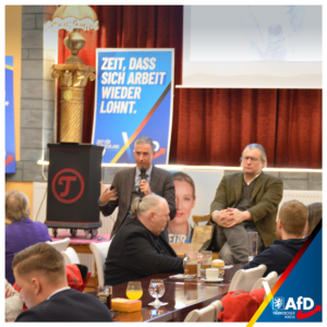 Im Mittelpunkt des Abends standen die anstehenden Veränderungen im Landesverband Nordrhein-Westfalen. Unter dem Titel „Doppelspitze für den Landesvorsitz“ haben Christian Zaum und Fabian Jacobi ihre Vorstellungen für die bevorstehende Wahl und die zukünftige Ausrichtung des Landesverbandes vorgestellt. Sie machten deutlich, wie sie Strukturen modernisieren, Entscheidungsprozesse transparenter gestalten und den Landesverband insgesamt schlagkräftiger und näher an Mitgliedern wie Bürgern ausrichten möchten.