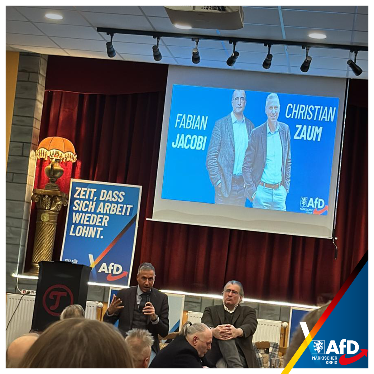 Im Mittelpunkt des Abends standen die anstehenden Veränderungen im Landesverband Nordrhein-Westfalen. Unter dem Titel „Doppelspitze für den Landesvorsitz“ haben Christian Zaum und Fabian Jacobi ihre Vorstellungen für die bevorstehende Wahl und die zukünftige Ausrichtung des Landesverbandes vorgestellt. Sie machten deutlich, wie sie Strukturen modernisieren, Entscheidungsprozesse transparenter gestalten und den Landesverband insgesamt schlagkräftiger und näher an Mitgliedern wie Bürgern ausrichten möchten.